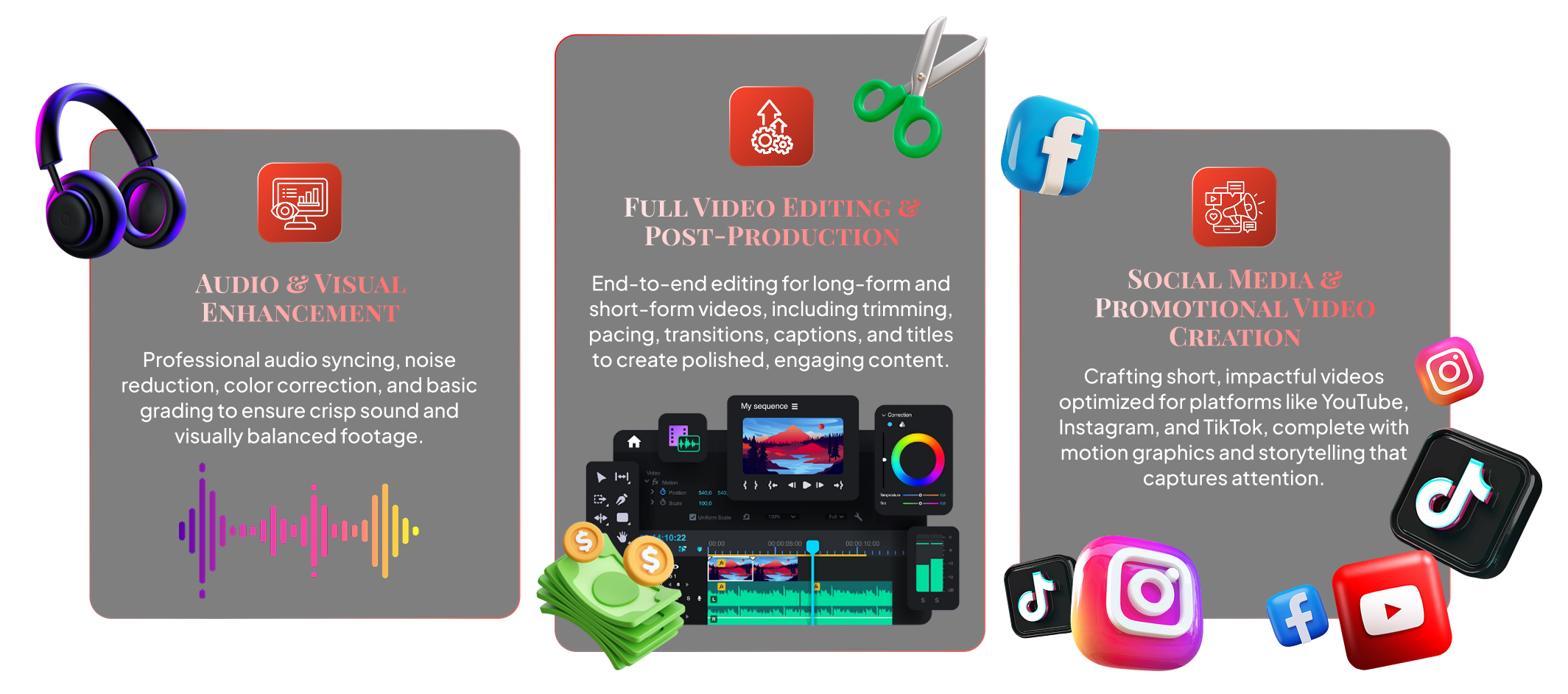 Whether you need clean, fast-paced social videos… high-quality branded edits… or full-scale storytelling that captivates from the first second, each tier is built to deliver clarity, precision, and undeniable quality.